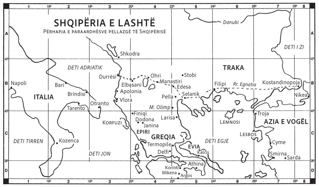 Pjesa e parë e librit i kushtohet prejardhjes dhe autoktonisë së shqiptarëve. Jacques nis me shtrirjen ilire, karakteristikat kulturore të popullsive të lashta dhe marrëdhëniet me botën helene e romake. Ai analizon ndikimin romak të strukturave urbane dhe të krishterimit të hershëm në formësimin e identitetit etnokulturor, duke theksuar se pavarësisht ndryshimeve politike, popullsia vendëse ruajti vazhdimësinë gjuhësore dhe demografike. Autori thekson se qytetërimi mikenas luajti një rol kyç në proceset e hershme të hapjes ekonomike dhe kulturore në Epir, ku ndikimet në tregti, bujqësi dhe organizim shoqëror shtruan themelet e zhvillimeve të mëvonshme. Në territoret ilire, ky ndikim u përcoll përmes lidhjeve tregtare dhe kontakteve me fqinjët, duke krijuar një bazë të përbashkët të jetës shoqërore dhe traditave kulturore. Kështu, Epiri dhe Iliria bashkëformuan një rrjet zhvillimesh që ndikuan në strukturat e hershme dhe identitetin e popullsisë, duke vendosur themelet e historisë së kombit shqiptar. Kalimi në periudhën mesjetare paraqitet si një epokë komplekse, shoqëruar nga depërtimet sllave, ndryshimet në organizimin shoqëror dhe krijimin e principatave feudale. Jacques e sheh këtë periudhë jo si ndërprerje të vazhdimësisë etnike, por si fazë tranzicioni ku gërshetohen elemente të krishterimit lindor dhe atij perëndimor, duke formuar tiparet rajonale të kulturës shqiptare. Në këtë kontekst, periudha mesjetare shërben si prelud i zhvillimeve të mëdha të shekullit XV.