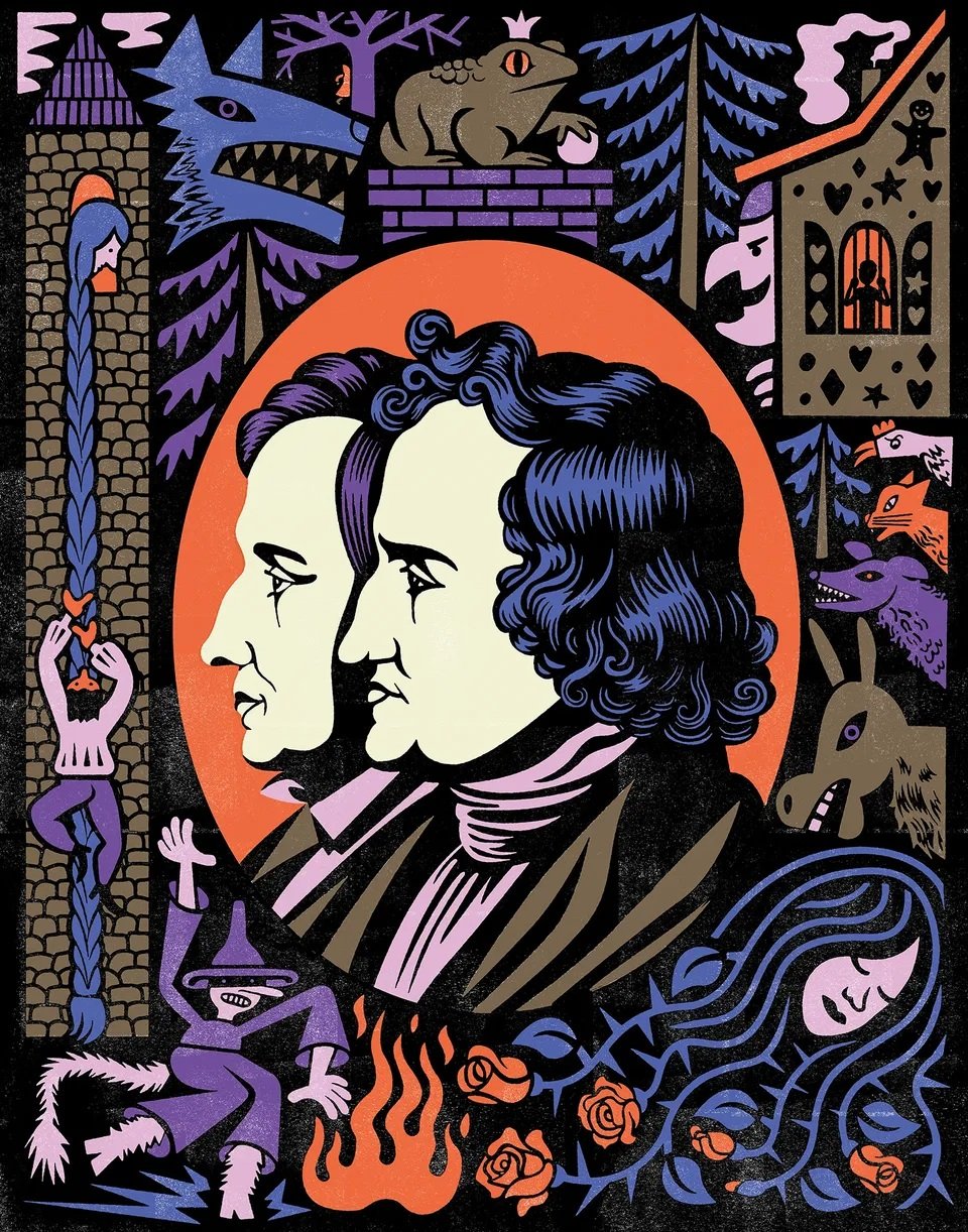 Na ishte njëherë një familje me mbiemrin Grimm, që bënte një jetë e cila ishte gjithçka tjetër, përveçse përrallë. Në shtetin gjerman të pyllëzuar të Hesenit, Filipi, një nëpunës qyteti, jetonte me gruan e tij, Dorotean, dhe fëmijët e tyre në një shtëpizë piktoreske. Pjesa e jashtme ishte një e kuqe e hapur tërheqëse dhe dyert ngjyrë kafe e çelët, si të ishin bërë prej biskote xhenxhefili. Dhoma e ndenjes ishte e veshur me letër muri me figura gjuetarësh, mbi fytyrat e të cilëve dy djemtë e mëdhenj, Jakobi dhe Vilhelmi (të lindur përkatësisht në 1785 dhe 1786), u vizatonin me pafajësi mjekra me laps. Shpejt, Filipi u gradua për të shërbyer si magjistrat i një qyteti aty pranë dhe familja Grimm u zhvendos në një shtëpi madhështore me shërbyese, kuzhinier dhe karrocier. Çdo Krishtlindje, familja zbukuronte një pemë me mollë, siç ishte zakoni gjerman. Në verë, fëmijët guxonin të futeshin në pyjet përreth për të mbledhur flutura dhe lule, të bindur se mund ta gjenin rrugën e kthimit për në shtëpi.