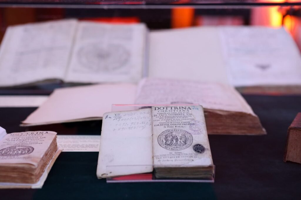Ekspozita përfshin më shumë se katërqind vëllime biblike dhe materiale me karakter biblik e liturgjik, të shtypura nga mesi i shekullit XV deri në shekullin XIX në qendra të ndryshme evropiane, si: Itali, Francë, Gjermani, Holandë e Greqi, duke krijuar një hartë materiale të qarkullimit të librit të shenjtë në kontinent. Nga inkunabulat e para tek botimet e rafinuara të shekujve të mëvonshëm, këto vepra lejojnë ndjekjen e zhvillimit të tipografisë, të ikonografisë dhe të teknikave të shtypshkrimit, por sidomos japin dëshmi të itinerarit historik të tekstit biblik si objekt kulti, studimi, interpretimi dhe përkthimi.
