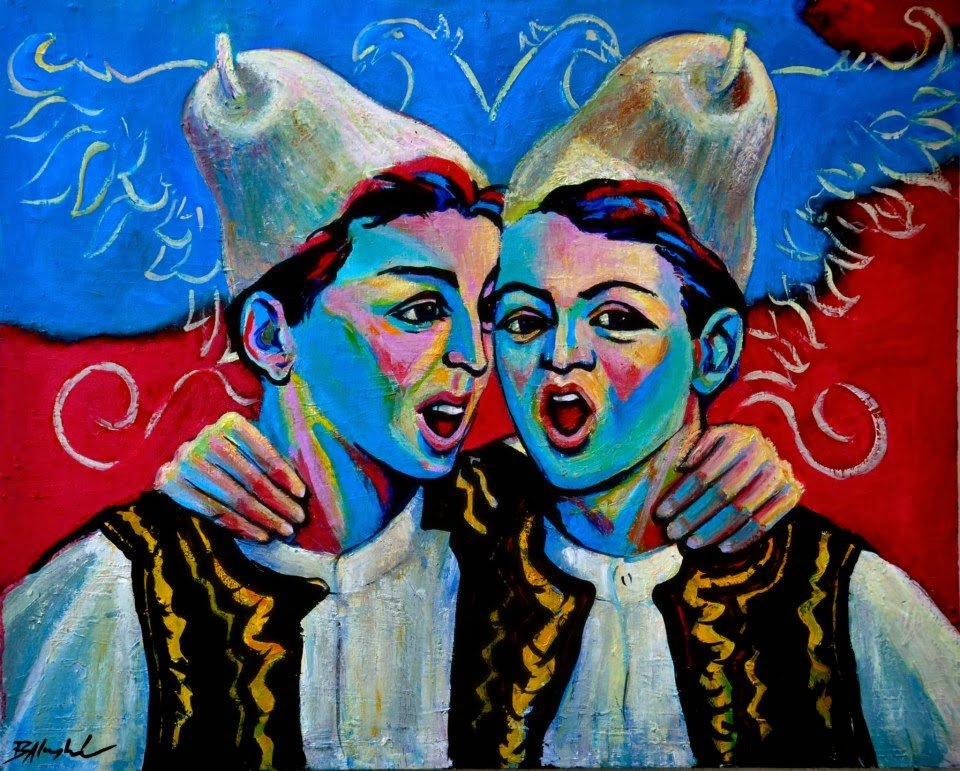 Ndër temat më të preferuara të këtij piktori është trashëgimia etnokulturore e popullit tonë. Në këtë fushë, piktori parapëlqen folklorin dhe etnografinë ku dallohet për një numër të konsiderueshëm kompozimesh. E veçanta e këtij inventari është kurba e zërit të këngëtarëve, e cila vibron në vepër si frymëmarrje. Ky element shfaqet thuajse në të gjitha këto punime, por, veçanërisht në kompozimet e polifonisë labe. Ai jepet nëpërmjet lëvizjeve të harmonizuara të këngëtarit sipas vijës melodike të këngës, ngërthyer në një pozicion energjik të tyre dhe mjaft të përkorë. Mënjanimi i kokës, hapja ovale e gojës apo një gjest shpërthyes i duarve, transmeton tek shikuesi pikërisht këtë kurbë.